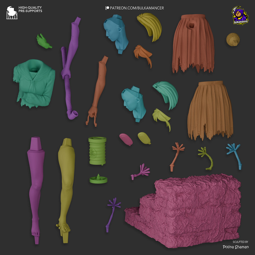 Delve into the suffocating fog of fear and loneliness with this statuesque vision of Hinako—a figurine that not only represents a person but opens a door to a dark psyche and fleeting innocence. Hinako stands motionless on a semi-dark base: her school uniform is saturated with the weight of trauma, and her gaze, filled with quiet fear and determination, speaks louder than a thousand cries from the abyss. Every fold of clothing, every crack and detail of hair, every fragment of her delicate figure conveys that this silence—the calm before the storm.