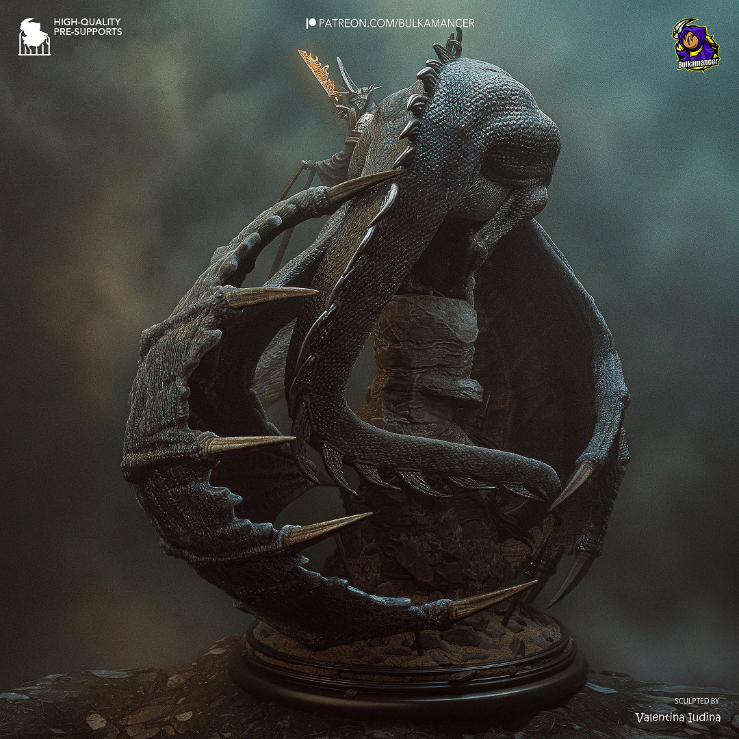 Summon the darkest legends – the Witch-King figure mounted on a fearsome steed (Fell Beast), ready to plunge his blade into the hearts of his foes. At 314mm tall, he soars like a demon with power over sky and shadow – clad in armor whose blades are as cold as death, a crown of thorns hidden in the stifling darkness, and a cape billowing with the wings of a ghastly dragon beneath him. Every fold of the cloak, every scale of the beast, every detail of the armor and weaponry exudes the ruthless majesty of a power that knows no mercy.