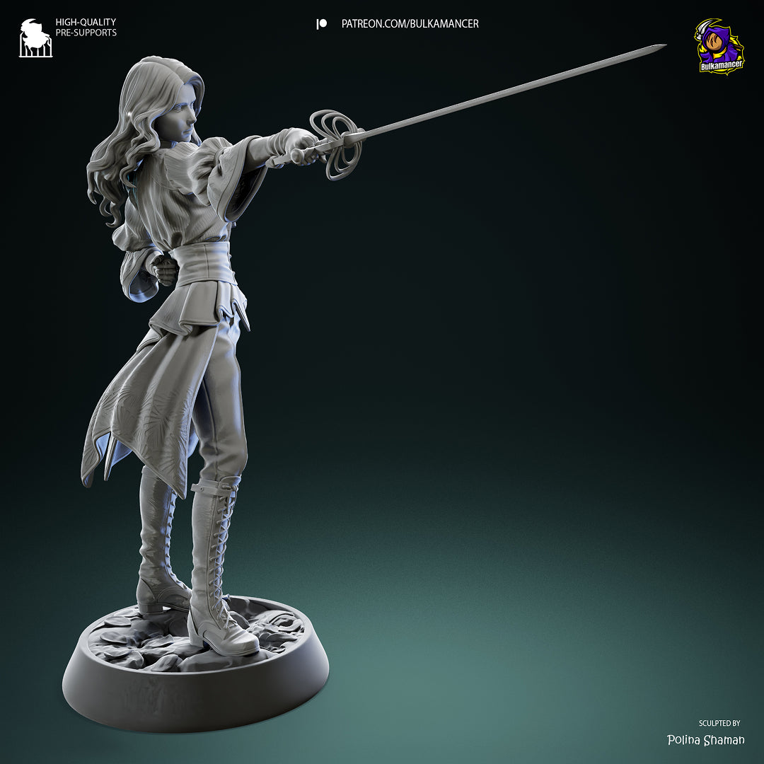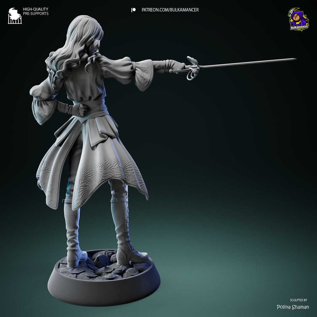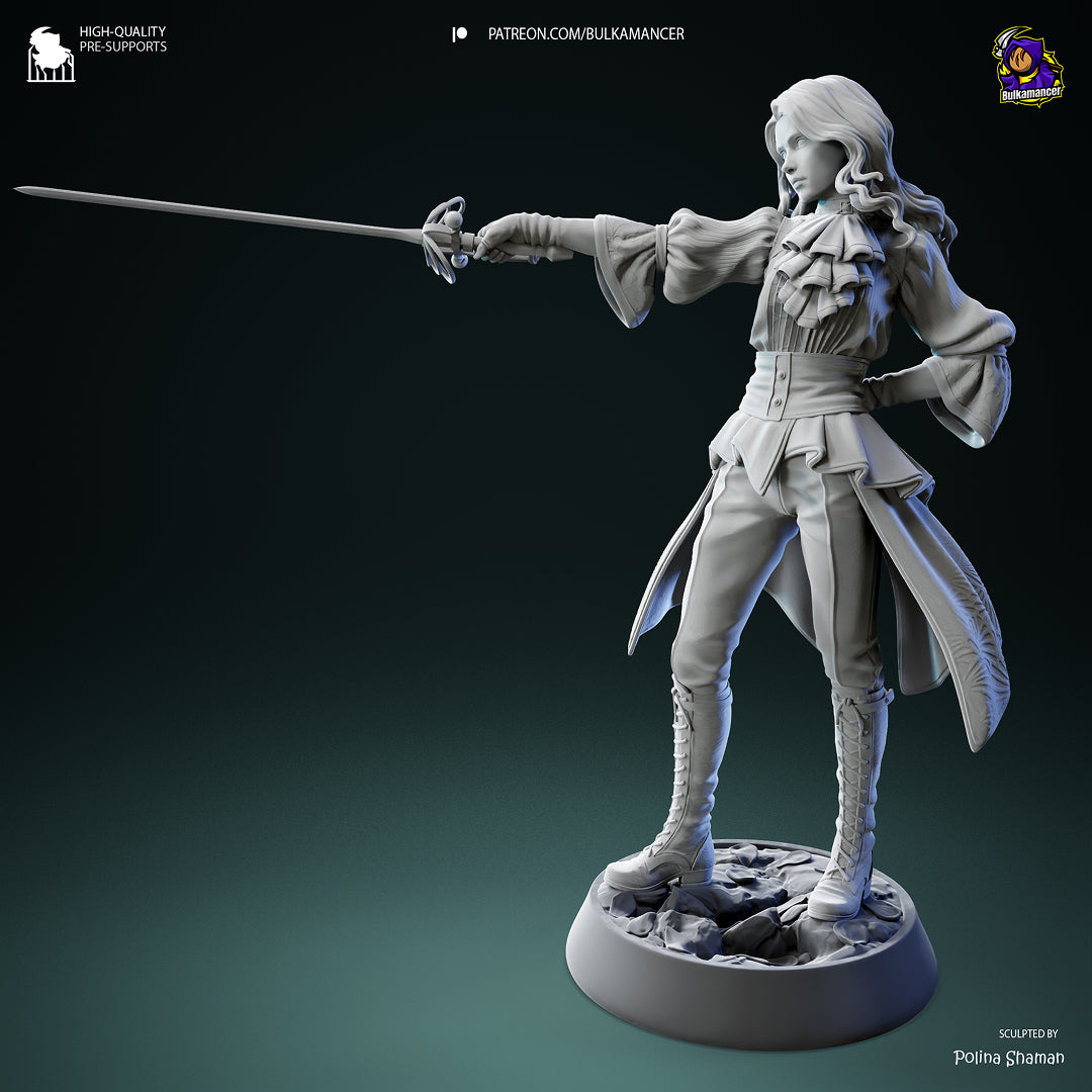 Figurka dostępna z klasycznym rapierem oraz dodatkowym wariantem z mieczem w formie bagietki dodawanym do każdego zamówienia gratis.