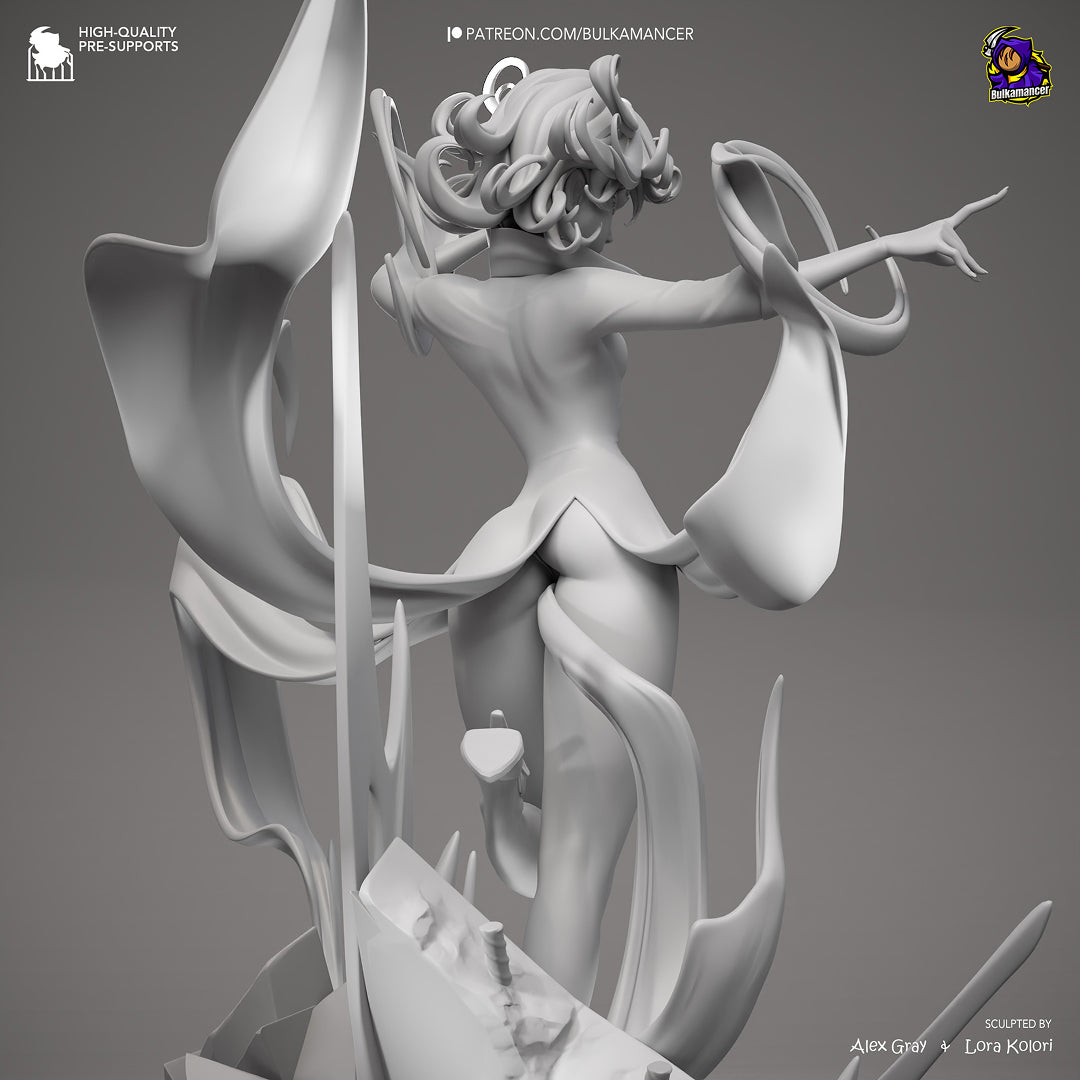 Wzniesiona ponad przeciętność Tatsumaki unosi się niczym żywioł, który łamie granice materii i woli, manifestując potęgę Espera stojącego ponad światem. Ta figurka to uosobienie surowej władzy umysłu: zielone oczy pełne zimnej determinacji, kosmyki włosów unoszące się w niemym wietrze, a ciało otulone tkaniną, która zdaje się falować jak energia tuż przed eksplozją, wszystko to tworzy obraz kobiety, która nie potrzebuje miecza, by być zagrożeniem.